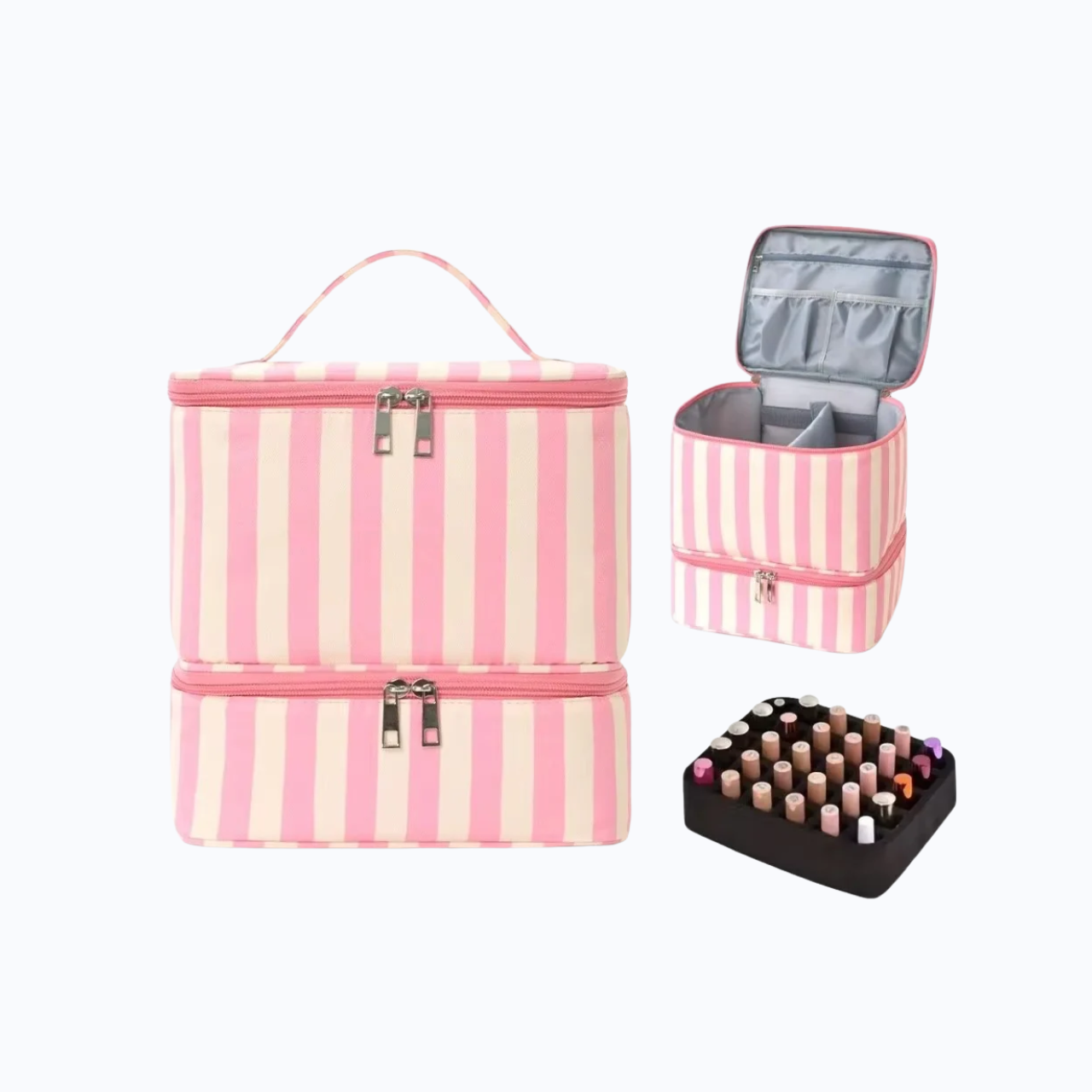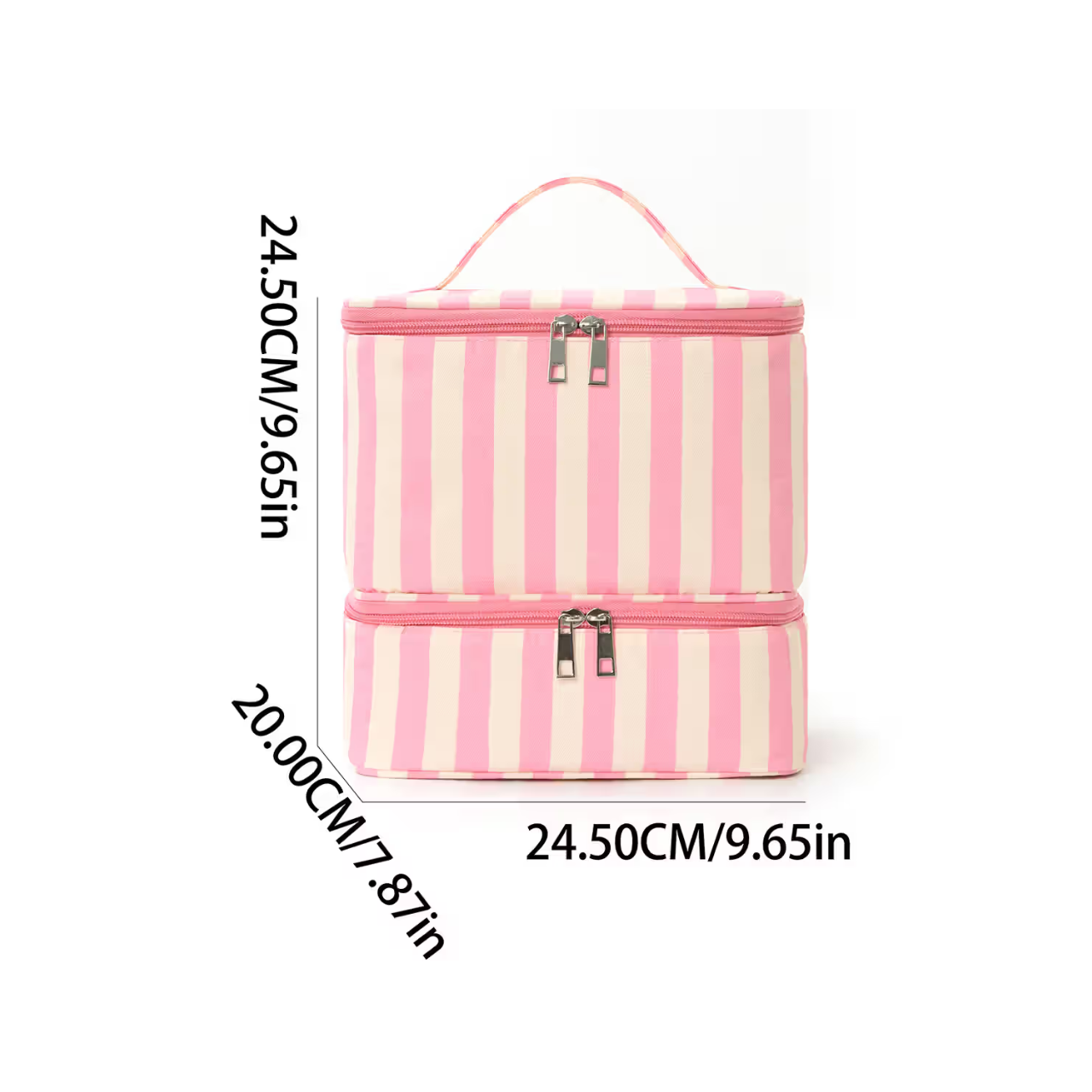 Upgrade your beauty routine with the Large Capacity Striped Makeup Case that’s as stylish as it is practical: